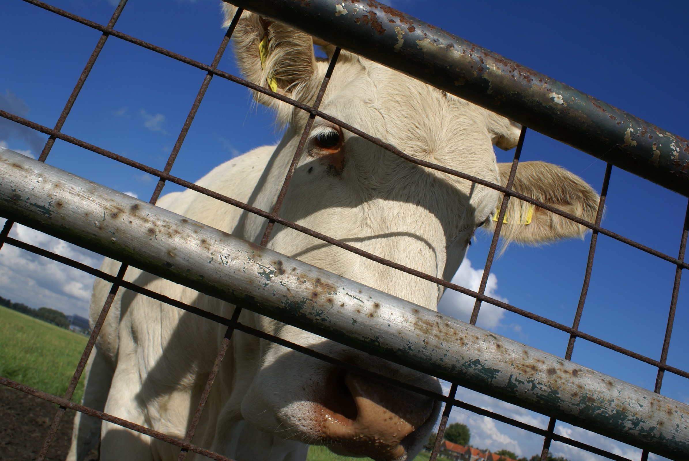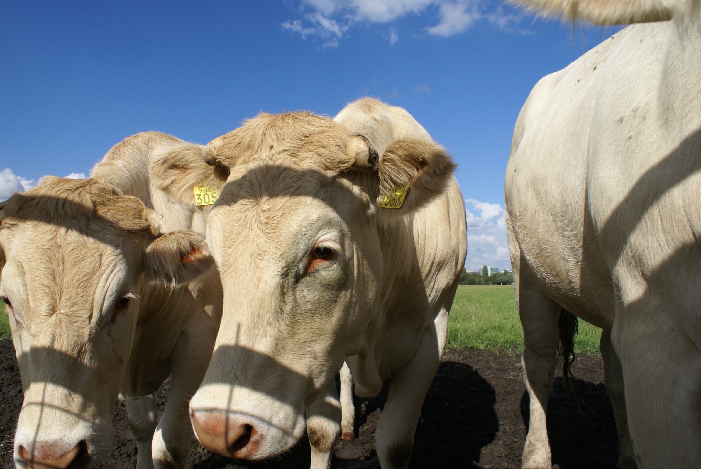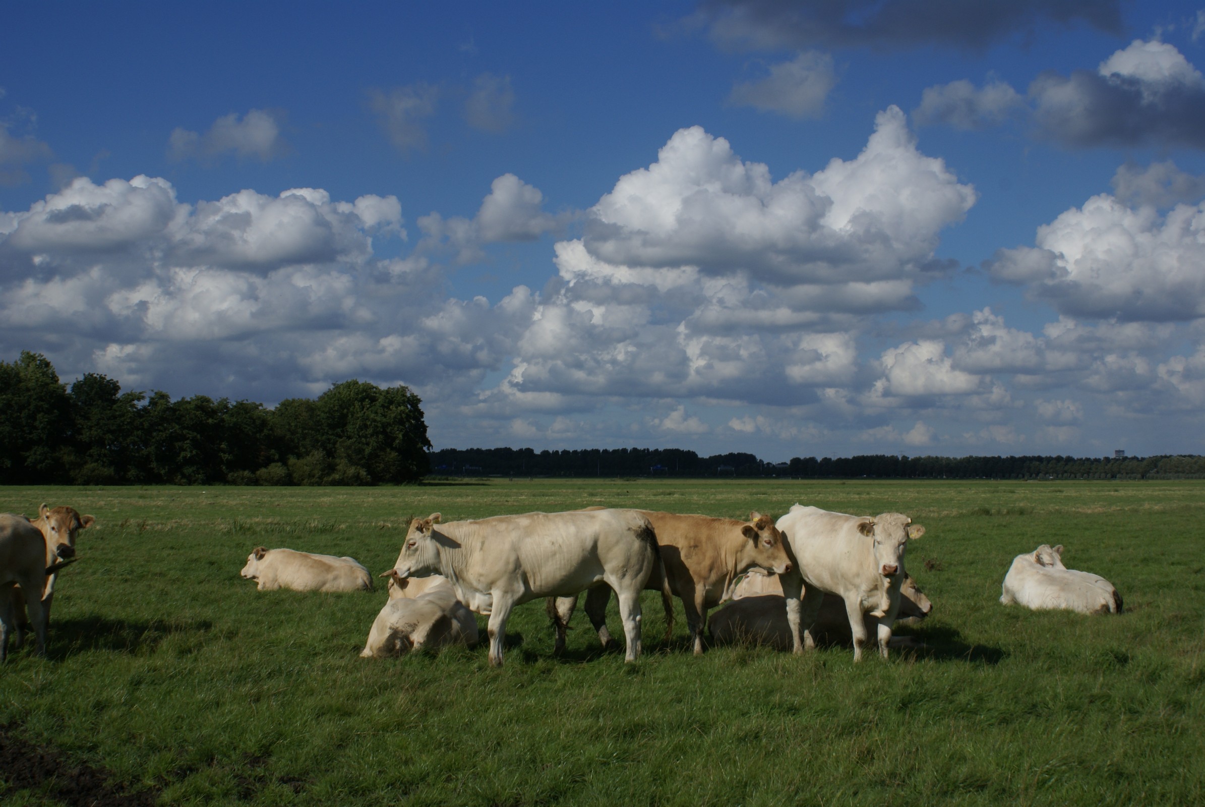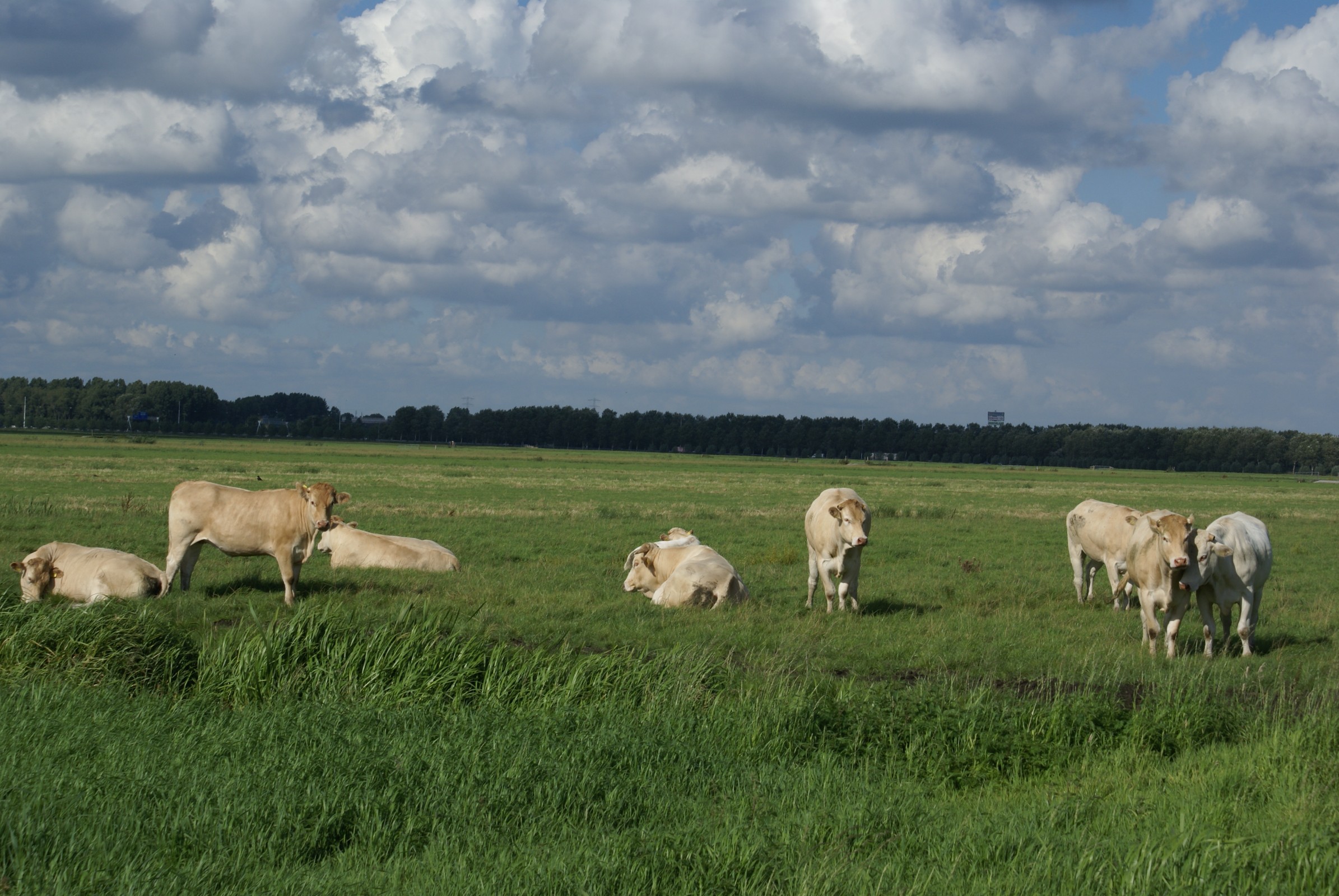 Koeien op het weiland bij Ouderkerk a/d Amstel. Op achtergrond Amsterdam ArenA.